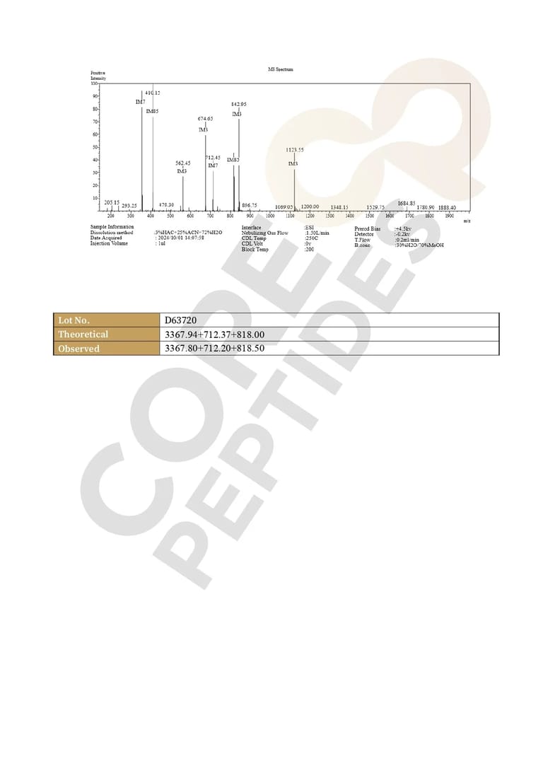 CJC-1295 (Mod GRF 1-29) | C152H252N44O42 | 3367.9 g/mol | Growth Hormone-Releasing Hormone (GHRH) agonist |
