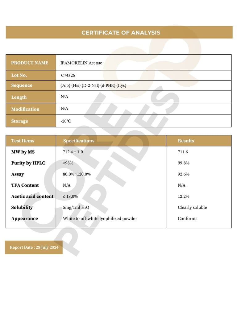 Disclaimer: Ipamorelin peptide is available for research and laboratory purposes only.